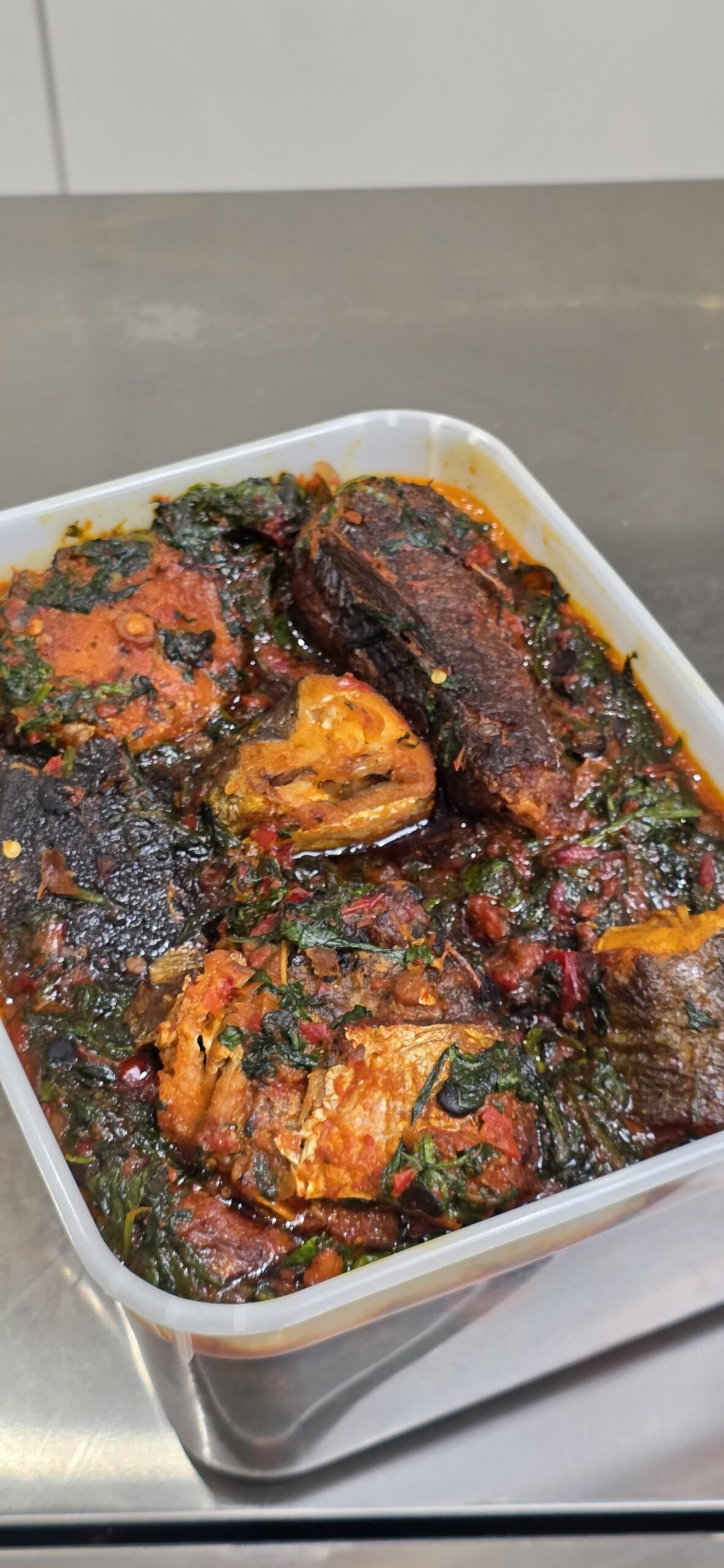Banga soup with fish & mixed meat